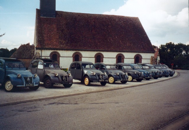 Vers 16 heures, les modestes moteurs bicylindres sont à nouveau sollicités pour rejoindre Moussonvilliers (61) où se tient la seconde assemblée générale annuelle. Une fois l’ordre du jour épuisé et entrecoupé de conversations passionnées une dernière séance de vues de groupe et individuelles est faite en extérieur. Un retour sur La Ferté-Vidame, ponctué d’un arrêt au centre de sa vaste forêt, permet de rejoindre la ferme-auberge où pour un apéritif et un dîner que tous ceux qui y ont assisté ne sont pas prêts d’oublier. Mais devant le nombre grandissant des membres et de sympathisant, il faut désormais prévoir un lieu plus vaste pour réunir les passionnées des premières 2 CV. Ainsi pour la seconde réunion hivernale programmée le samedi 16 mars 2002, Christophe Buisson, le maître de cérémonie, et les membres du bureau ont promis de trouver une salle digne de ce nom.