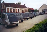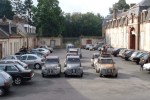 De bonne heure le samedi matin, sous le regard à la fois étonné et admiratif des Fertois, des 2 CV à l’âge respectable empruntent dans un va et vient les diverses rues du bourg pour finalement converger vers le point de ralliement fixé sur la place Saint-Simon. La joie des retrouvailles, faire la connaissance de nouveaux équipages et la réception des participants de dernière heure, entraînent les organisateurs à légèrement modifier le programme judicieusement prévisionnel. De plus, quelques propriétaires de 2 CV à moteur de 375 cm3 en cours de restauration ont manifestés le désir de venir examiner des points de détails sur les exemplaires présents. Il sont invités venir prendre place à bord des 2 CV, ceci afin de profiter eux aussi de la Balade des Essayeurs et de la Balade du Tour des Murs.