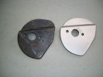 Ce modèle de bouchon de pivot, le deuxième, est apparu au mois de juin 1953 et est monté sur toutes les 2 CV jusqu’au mois de juillet 1959. Zingué noir, il est ici reproduit à l’identique, avec les filetages conformes à l’origine, mais, au lieu de comporter deux encoches, il comporte deux trous permettant une prise plus efficace pour son serrage.