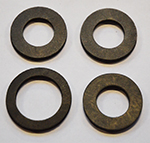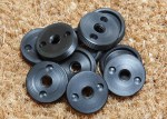 Ce modèle de bouchon de pivot, le deuxième, est apparu au mois de juin 1953 et est monté sur toutes les 2 CV jusqu’au mois de juillet 1959. Zingué noir, il est ici reproduit à l’identique, avec les filetages conformes à l’origine, mais, au lieu de comporter deux encoches, il comporte deux trous permettant une prise plus efficace pour son serrage.