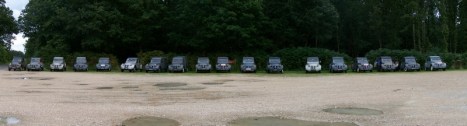 En tous cas, elles sont à l’heure pour un pique-nique avec vue sur les très impressionnantes ruines du château de La Ferté-Vidame. Pendant le déjeuner, les discussions entamées depuis le début de la matinée continuent bon train, chacun racontant ses histoires et ses anecdotes ou faisant part d’une astuce ou d’une bonne adresse. Une fois notre petit monde rassasié, les petits bicylindres sont à nouveau remis en route pour la seconde balade du week-end, La Balade du Tour des Murs. Comme il est évidemment impensable d¹entrer à l’intérieur du centre d¹essais de Citroën qui est toujours en activité, le club Les Filles de Levallois a décidé de faire le tour de ses 850 hectares entièrement clos de murs. Cela peut paraître un peu court pour une balade, mais avec des 2 CV A roumlant entre 50 et 60 kilomètres à l’heure, cela occupe une bonne partie de l’après-midi.