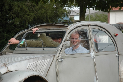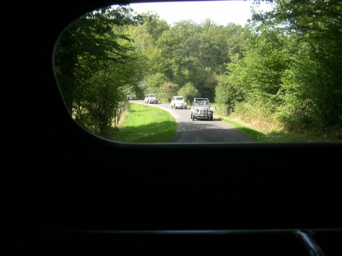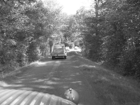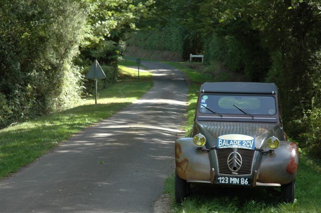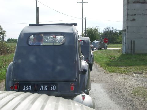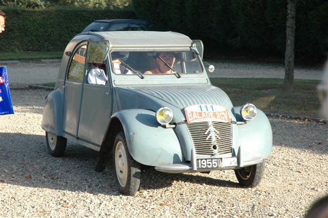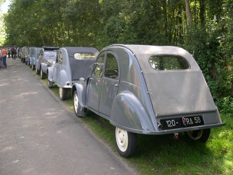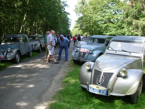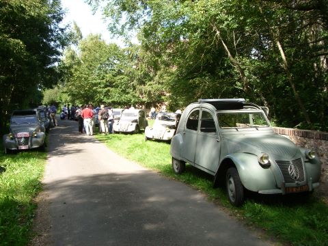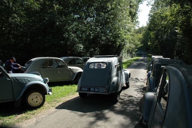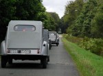 Cette première balade baptisée à juste titre Balade des Essayeurs a permis à tout notre petit monde de découvrir les environs de La Ferté-Vidame mais aussi d’emprunter la célèbre ligne droite de 15 kilomètres qui relie La Ferté-Vidame à la ville voisine de Verneuil-sur-Avre qui était utilisée à l’époque pour les essais de vitesse de pointe auxquels participait régulièrement Pierre Boulanger lui-même. A partir de Verneuil-Sur-Avre, les 2 CV ont emprunté des petites routes plus ou moins sinueuses et vallonnées traversant tantôt de magnifiques forêts à l’ombre de grands arbres tantôt quelques plaines baignées de soleil. Voir ces huit 2 CV se dandiner sur ces petites routes est alors un spectacle unique que tous les participants ont savouré avec délectation.