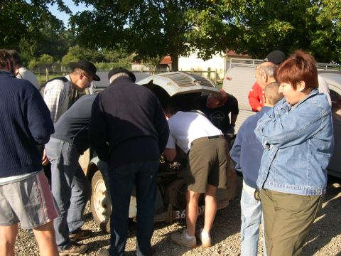 L’après-midi a commencé par la Balade du Tour des Murs effectuée en convoi et sous une pluie qui faisait des apparitions un peu trop régulières. Là, une seconde panne s’est déclarée puisque l’ami Xavier, a été victime d’un condensateur défectueux… et pourtant récent! La réparation étant effectuée au camping une fois la balade achevée tout notre petit monde a repris la route jusqu’à la salle municipale du village voisin de Moussonvilliers pour assister à l’assemblée générale annuelle du club.