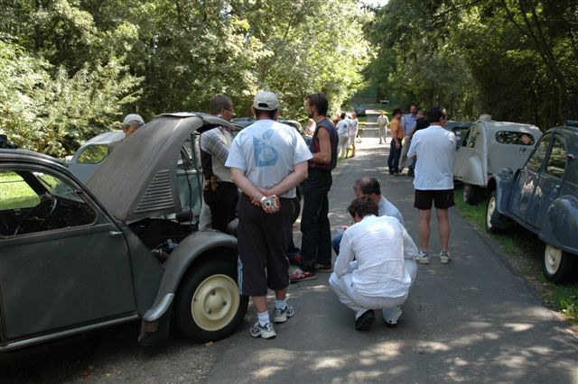 Après un sommeil réparateur, les participants se retrouvent le dimanche matin au camping tandis que les premiers reprennent déjà la route. Les moins pressés restent pour discuter de leur passion commune, comparer les modèles présents et finalement partager un dernier pique-nique au milieu des 2 CV A et 2 CV AU.